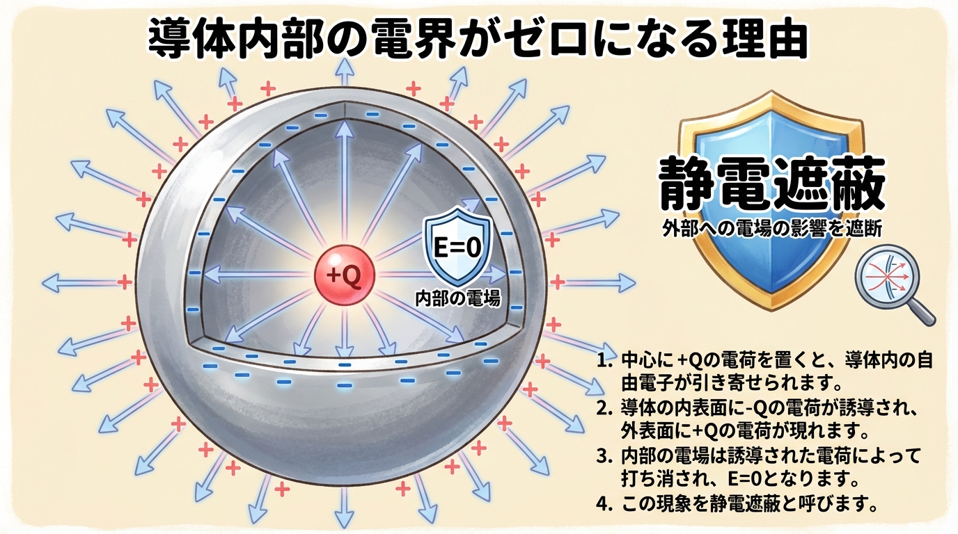 静電遮蔽(静電シールド)とは?|導体内部の電界がゼロになる理由を完全図解