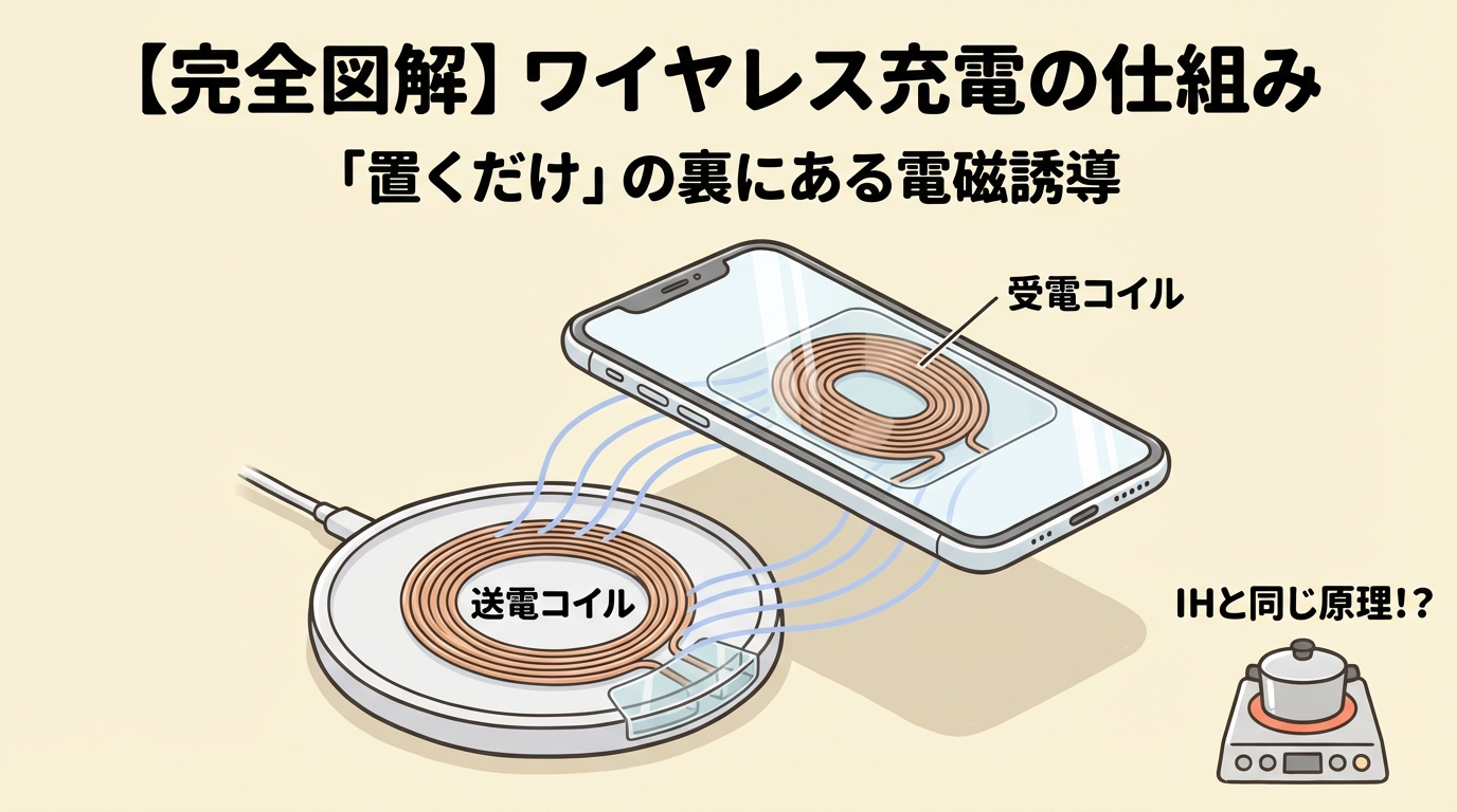 【完全図解】ワイヤレス充電(Qi)はなぜケーブルなしで充電できる?|「置くだけ」の裏にある電磁誘導の仕組み