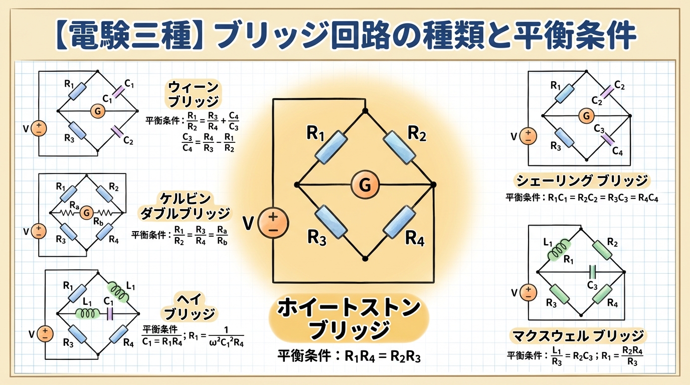 【電験三種・理論】ブリッジ回路の種類と平衡条件|ホイートストン以外のブリッジを総整理