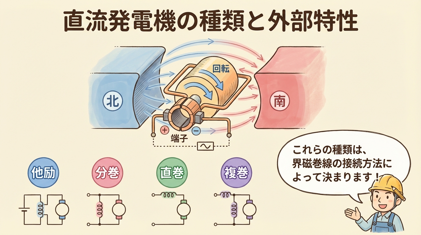 😣 こんな経験はありませんか? 「直流発電機の種類を答えよ」という問題で、名前は知っているが違いが説明できない 外部特性曲線のグラフを見ても、どの曲線がどの発電機か結びつかない 「分巻 ...