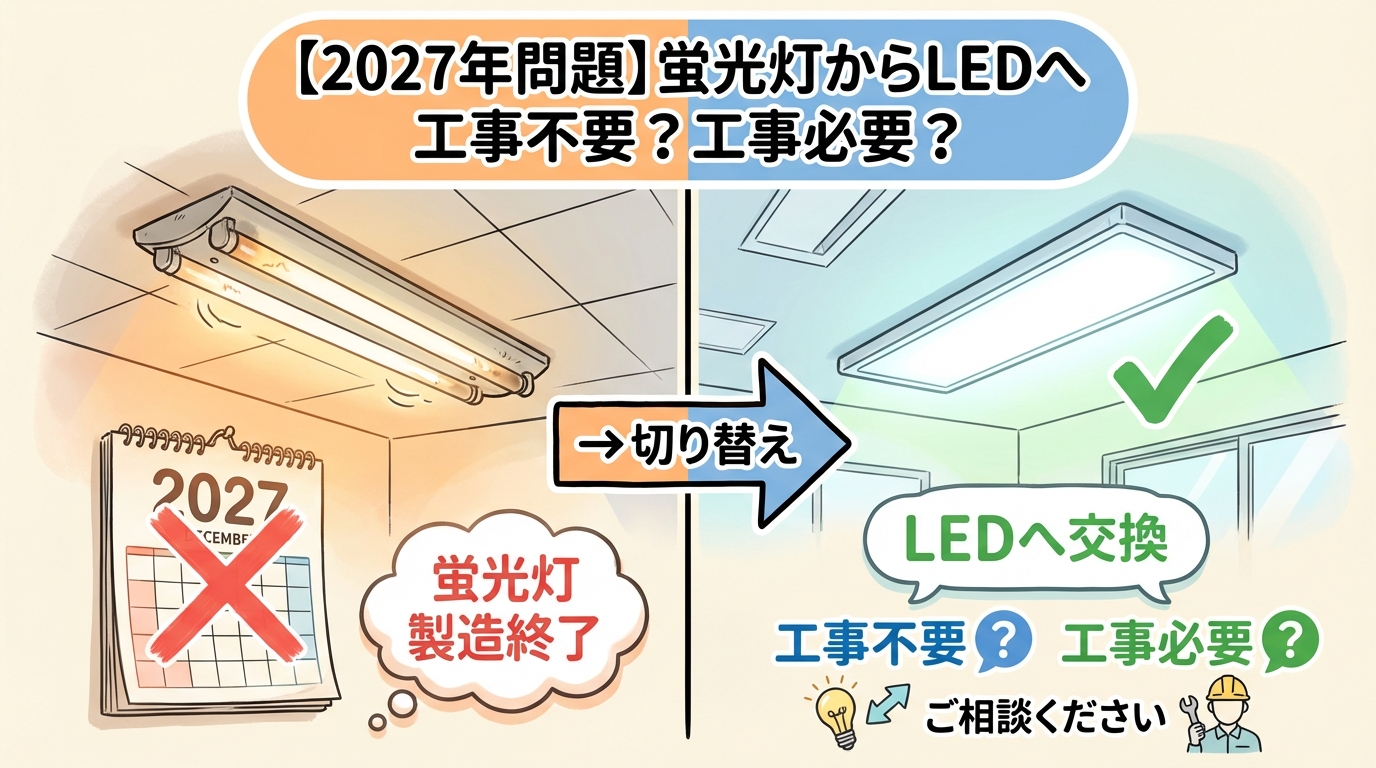 【2027年問題】蛍光灯からLEDへの交換ガイド|「工事不要」と「工事必要」の違いを完全図解