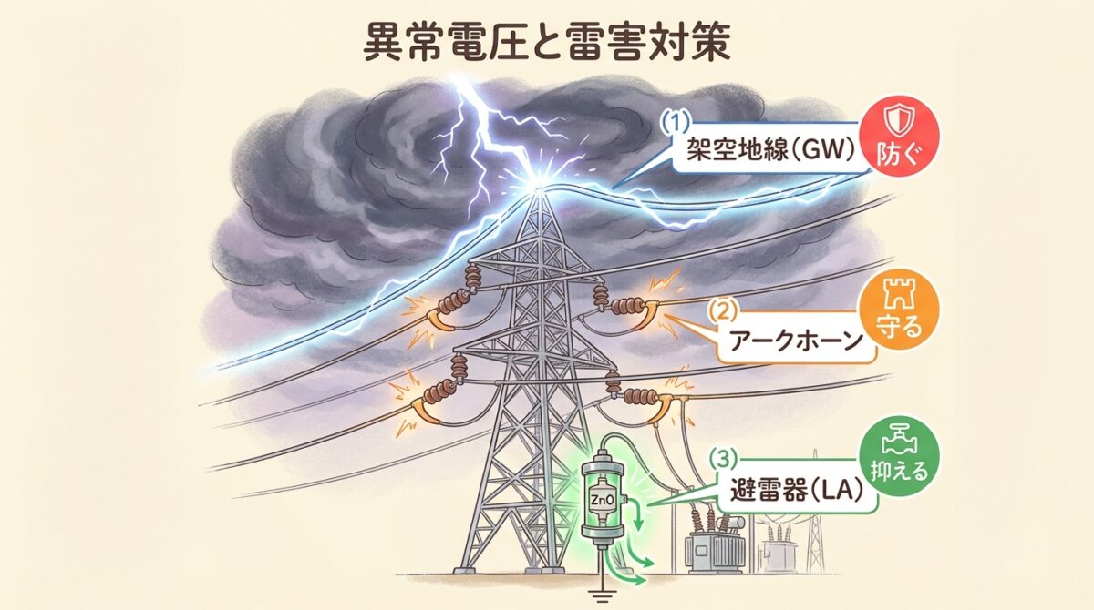 【電験三種・電力】架空送電線の構造|電線・がいし・鉄塔・架空地線を「鉄塔の上から下まで」完全図解