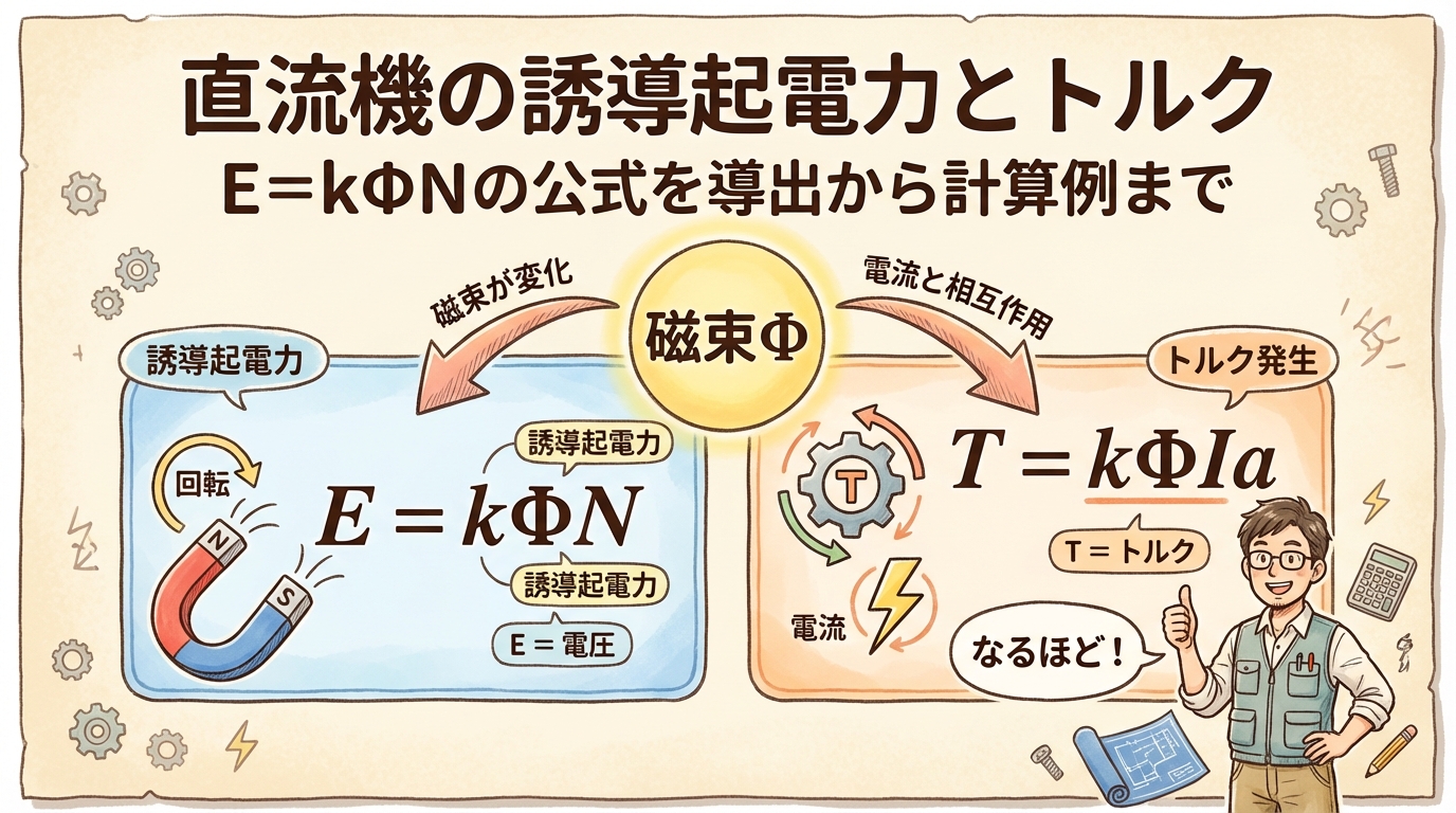 直流機の誘導起電力とトルク|E=kΦNの公式を導出から計算例まで