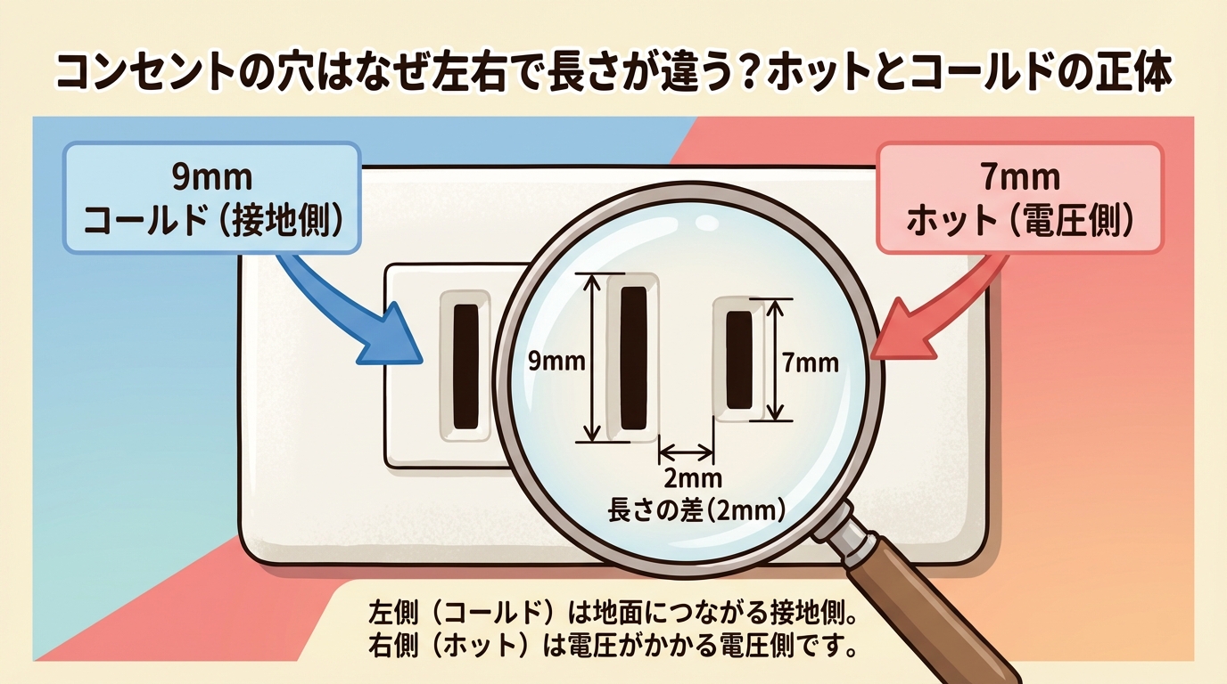 コンセントの穴はなぜ左右で長さが違う?|「ホット」と「コールド」の正体を5分で理解する