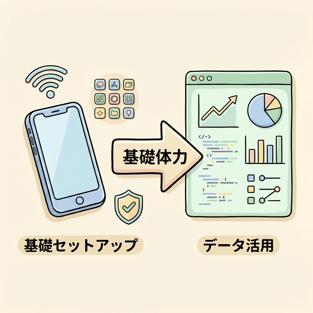 Wi-Fiの繋ぎ方、アプリのインストール、セキュリティ設定——これらができれば「スマホを使いこなせる基礎」がある、と言えますよね。DS検定も同じで、データの読み方、分析の基礎、AIの仕組み、セキュリティの注意点——これらの「データ活用の基礎体力」があることを証明する試験です。