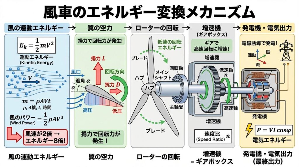 それでは、風が巨大な羽根を回し、電気を生み出す「ダイナミックな変換プロセス」を、一緒に追いかけていきましょう!