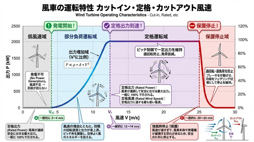 ⚙️ 運転特性|カットイン・定格・カットアウト風速