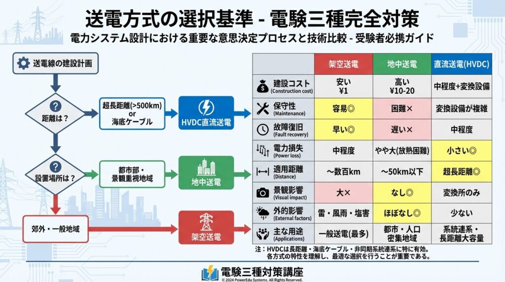 送電方式の選択基準と比較表を、次の図でまとめて確認しましょう! 👇