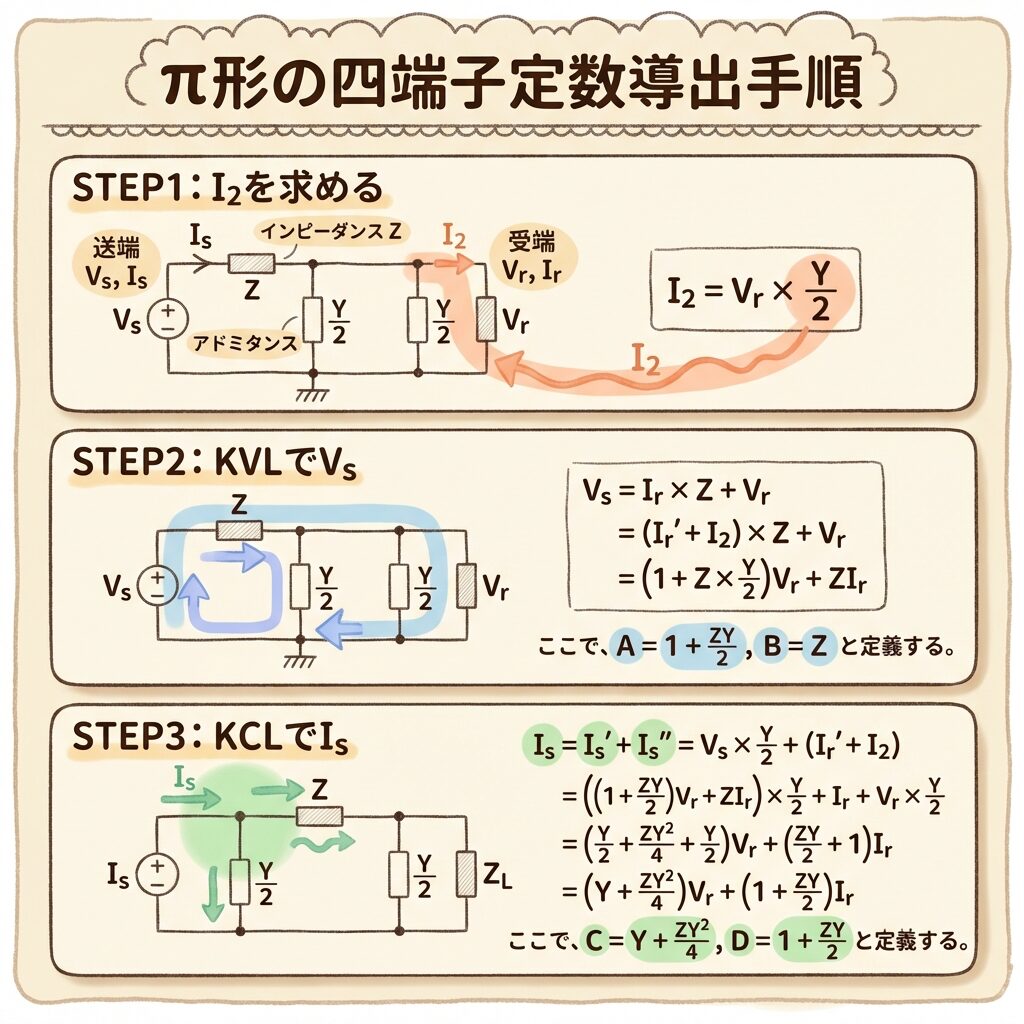 - 四端子定数A・B・C・Dの導出手順(π形を例に途中式あり)
