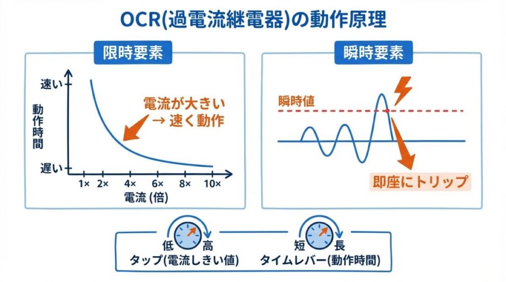OCRには2つの動作要素があります。これは電験三種の超頻出ポイントです。