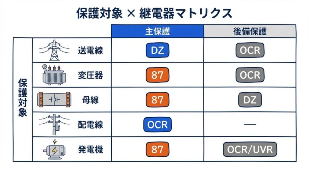 📋 保護対象と継電器の対応表