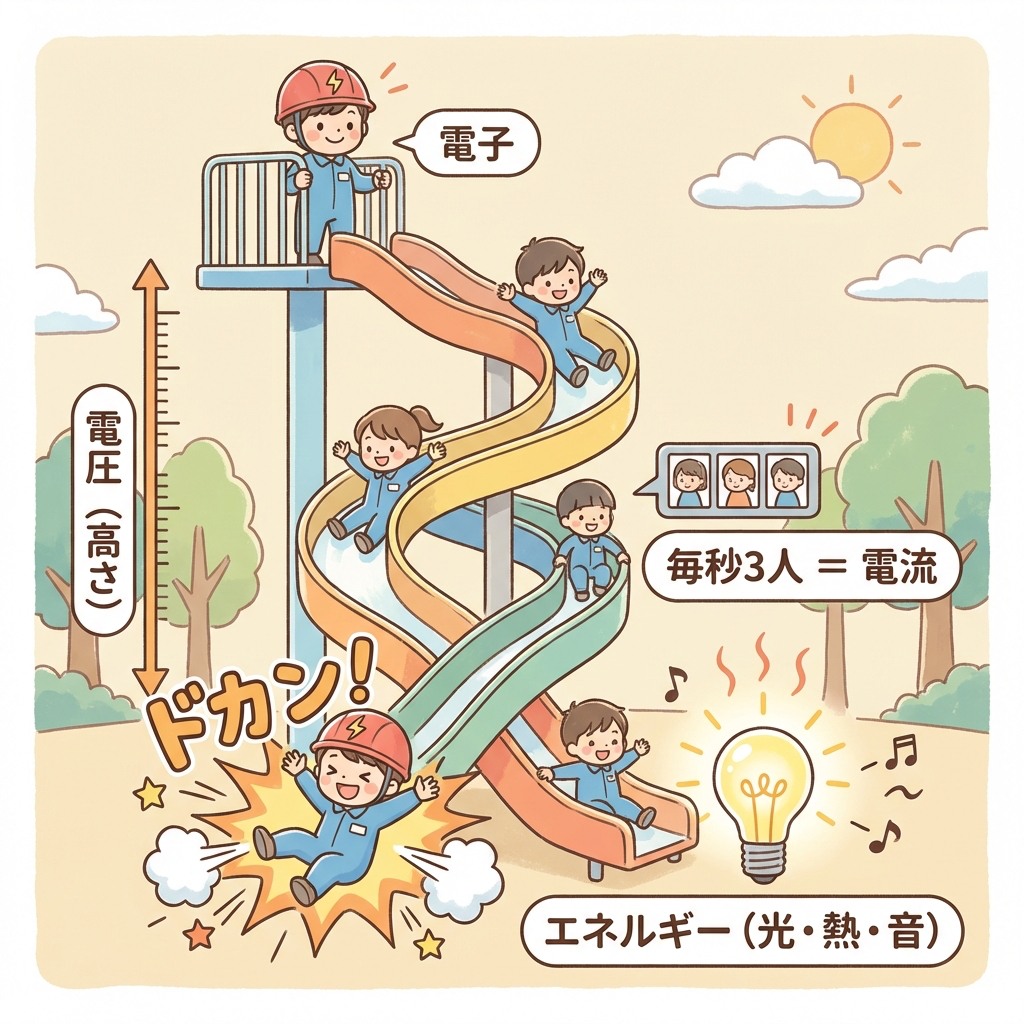 🎢 「すべり台」でわかる!電子・電流・電圧・エネルギーの関係
