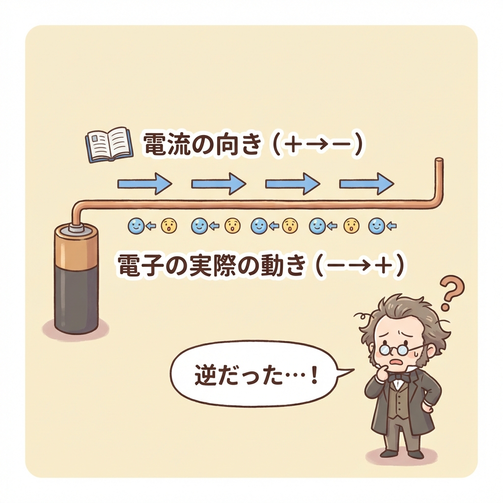 🔄 「電流の向き」と「電子の向き」は逆!? ─ 歴史が生んだ厄介なルール
