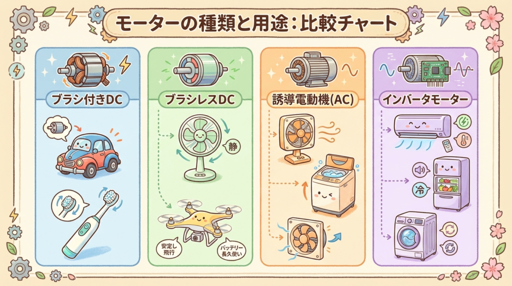 📋 モーターの種類と身近な家電の対応表