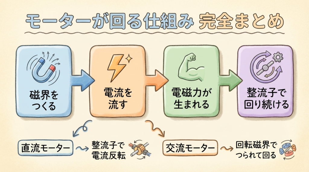 まとめ|モーターが回る仕組みを総復習