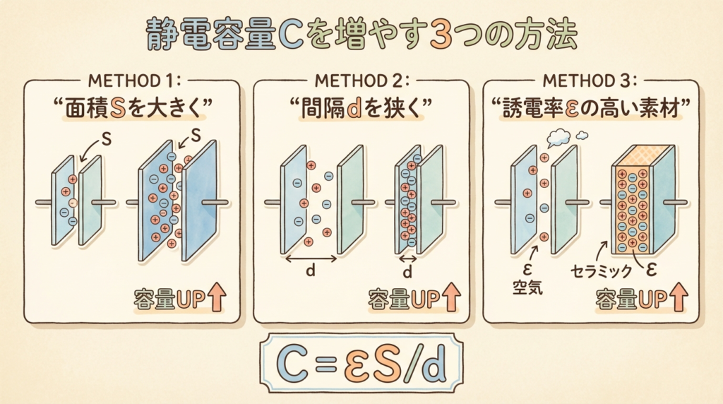 📏 静電容量を大きくする3つの方法