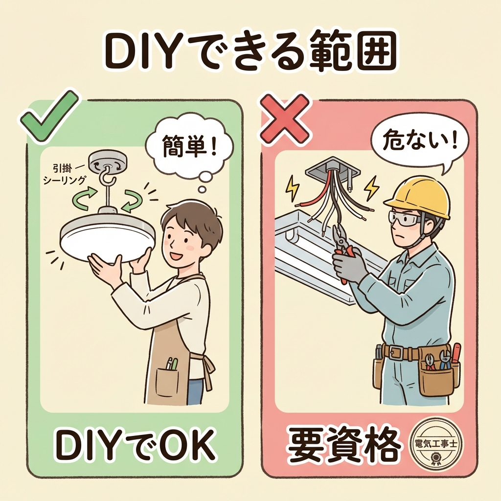 「自分でできるならDIYしたい」という方のために、法律上・安全上の線引きを明確にしておきます。