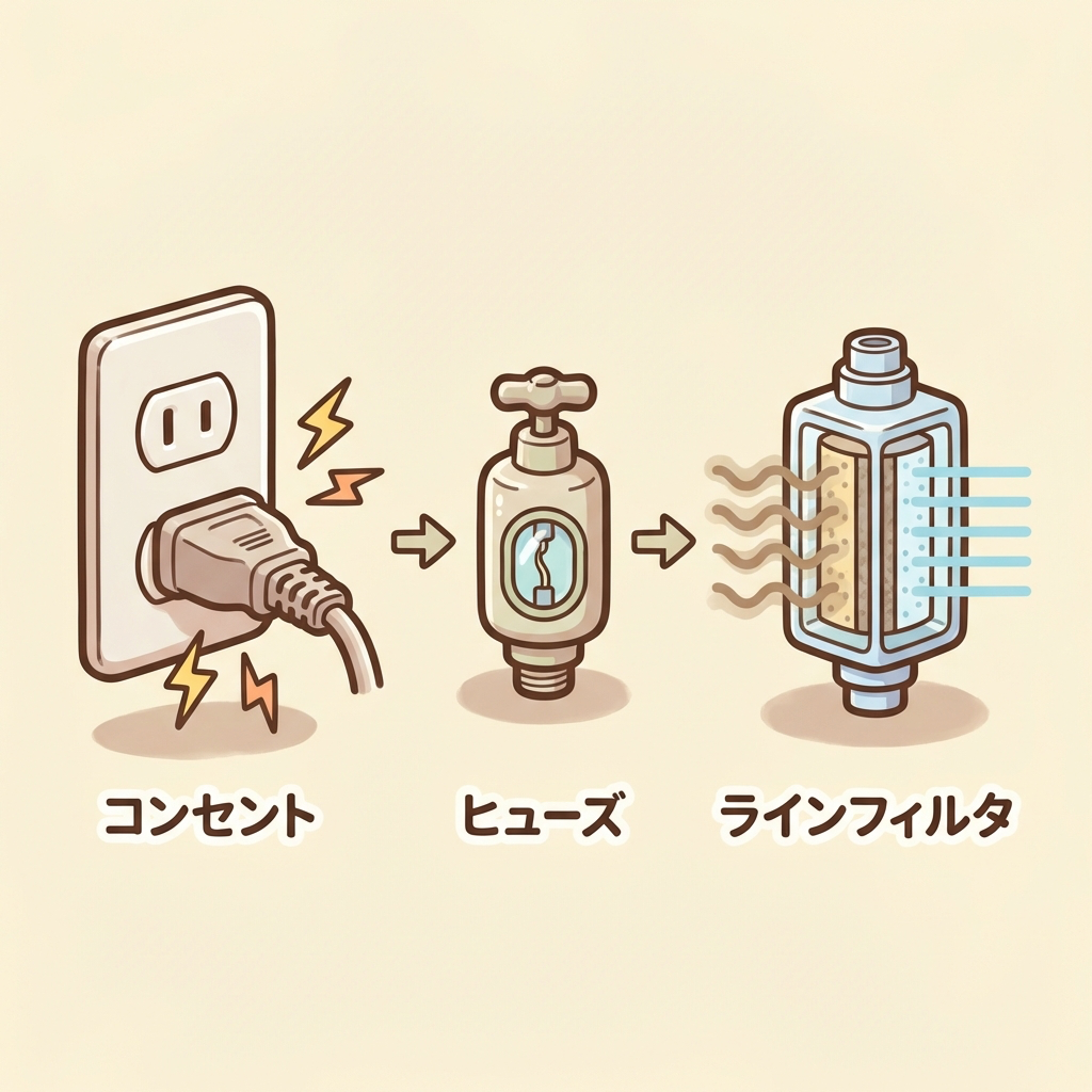 ② ノイズ除去:ラインフィルタで電気的なゴミを除去