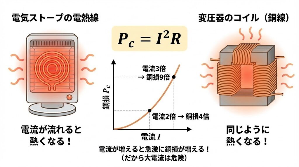 🟠 銅損(負荷損)― 電流が流れると発生する損失