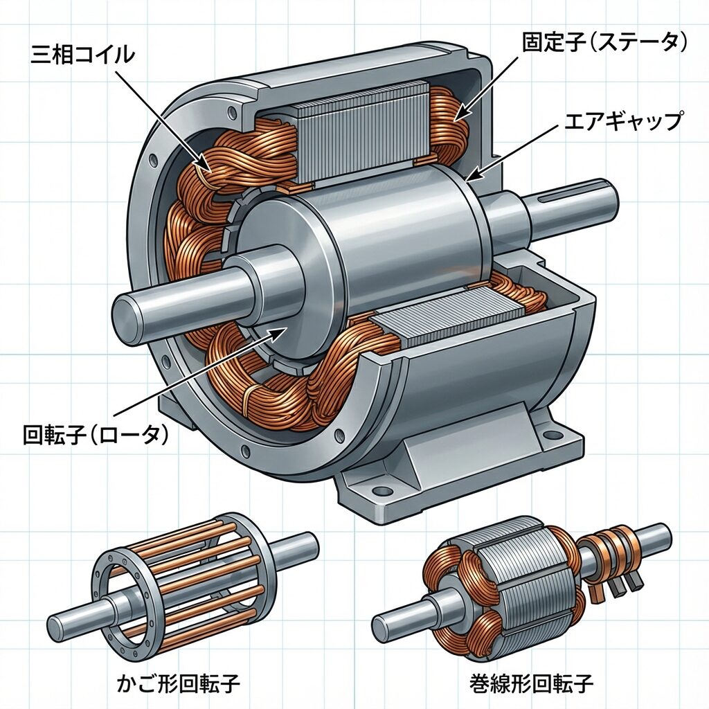 - 「三相誘導電動機」って、名前だけで難しそう...