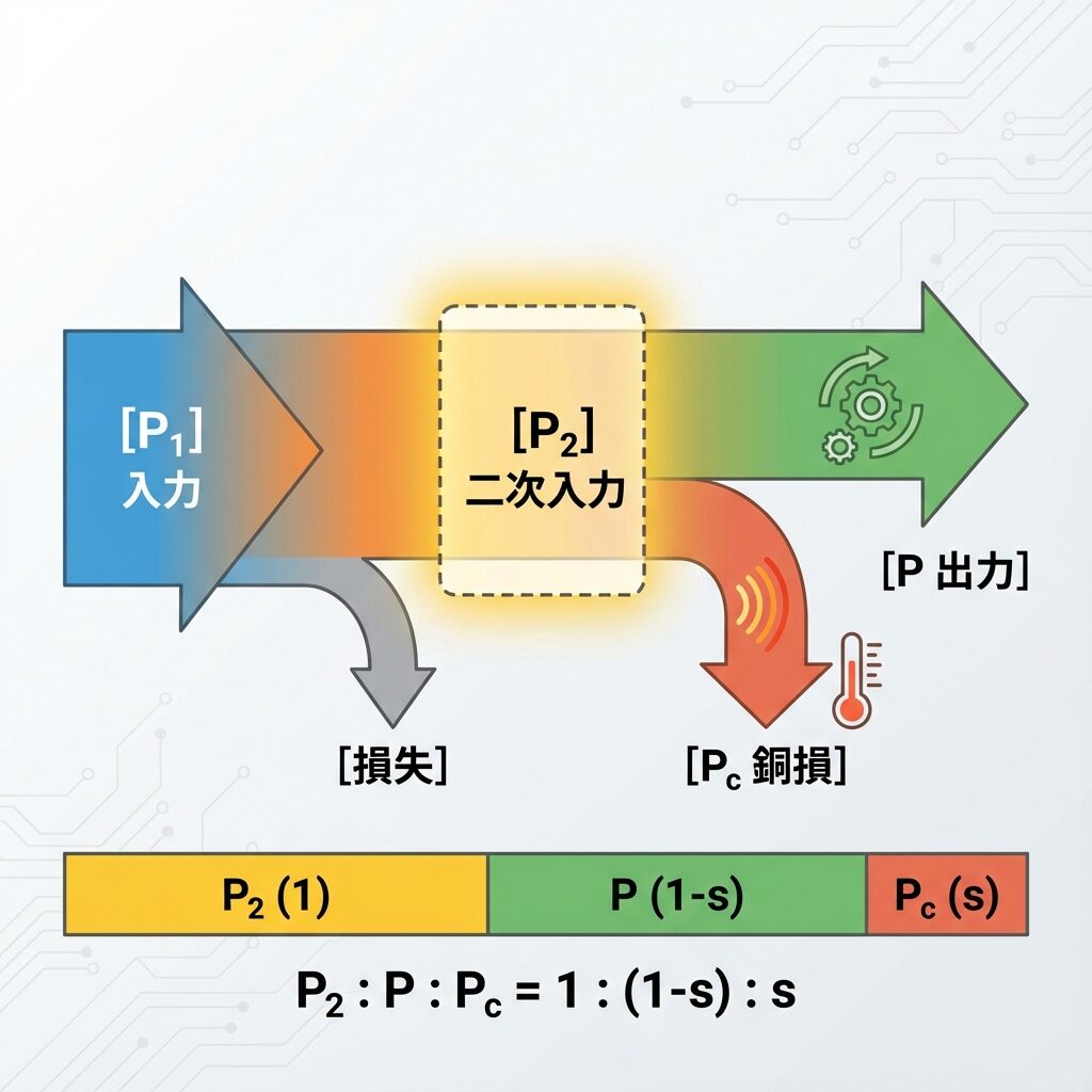 【図解で完全理解】トルクと出力の関係|P₂:P:Pc = 1:(1-s)😒 を完全マスター