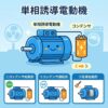 扇風機、洗濯機、冷蔵庫など、家庭で使われるモーターのほとんどがこれ!ただし、単相だけでは回転磁界が作れないので、コンデンサなどで工夫が必要です。