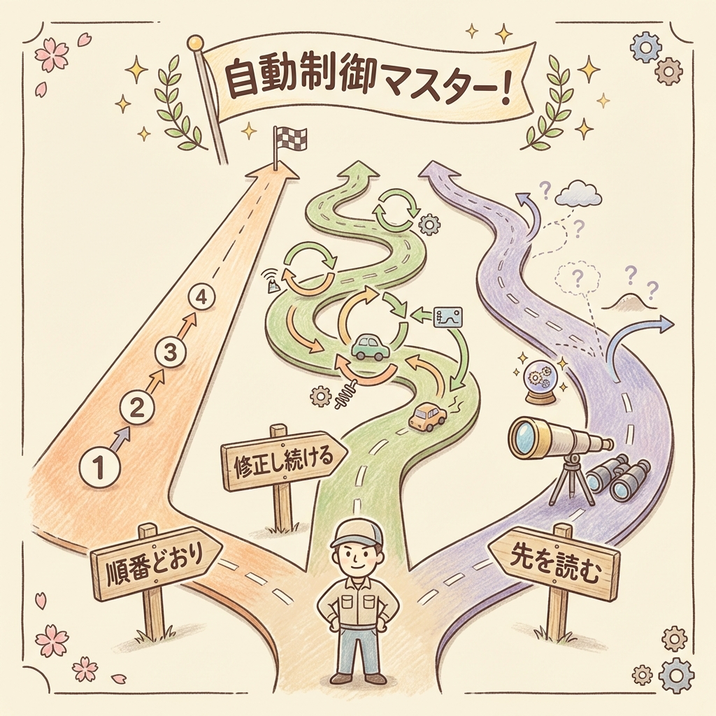 この記事は自動制御シリーズの「ハブ記事(出発点)」です。ここから先、伝達関数やブロック線図、PID制御といったより実践的なテーマに進んでいきます。