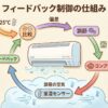 ポイントは「結果(室温)を常に測定して、目標との差を修正し続ける」ところです。これが「フィードバック(結果を戻す)」の意味です。