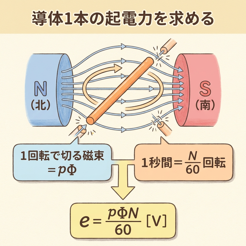 よって、導体1本あたりの起電力 e は: