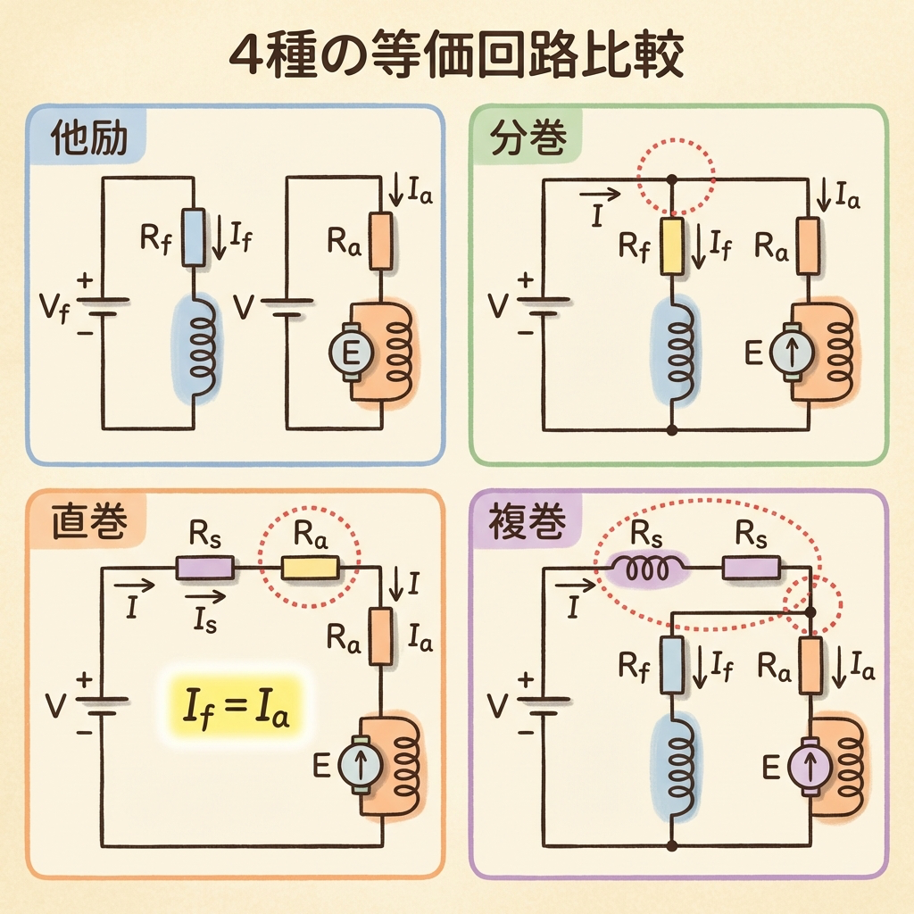 その違いとは──「界磁巻線をどこに繋ぐか」。これだけです。