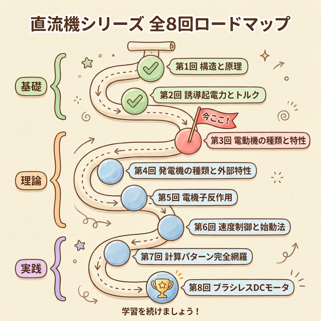 次回の第4回では、今回の「電動機」と対になる「直流発電機の種類と外部特性」を解説します。電動機との対比で整理するので、今回の内容がしっかり入っていれば、次回はサクッと理解できるはずです。