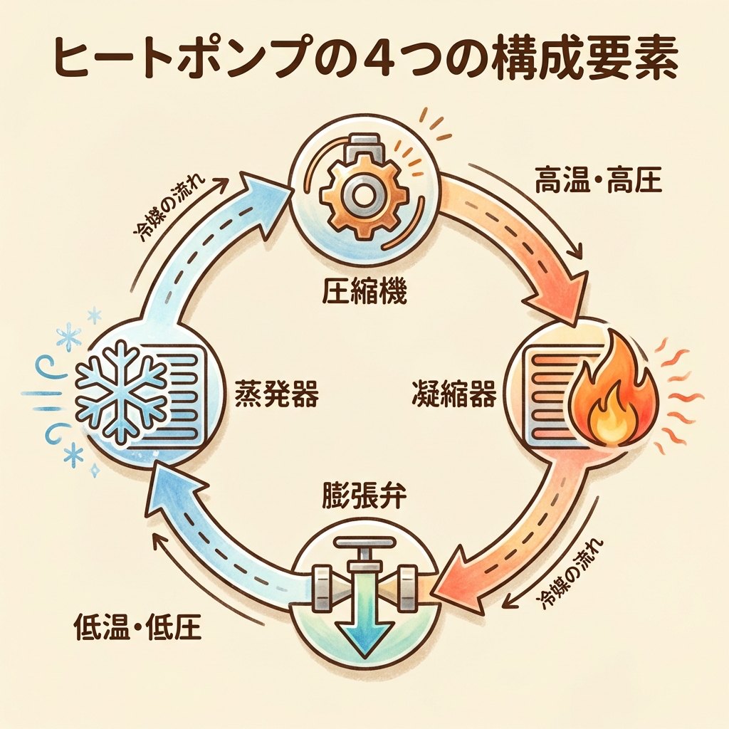 ヒートポンプの4つの構成要素