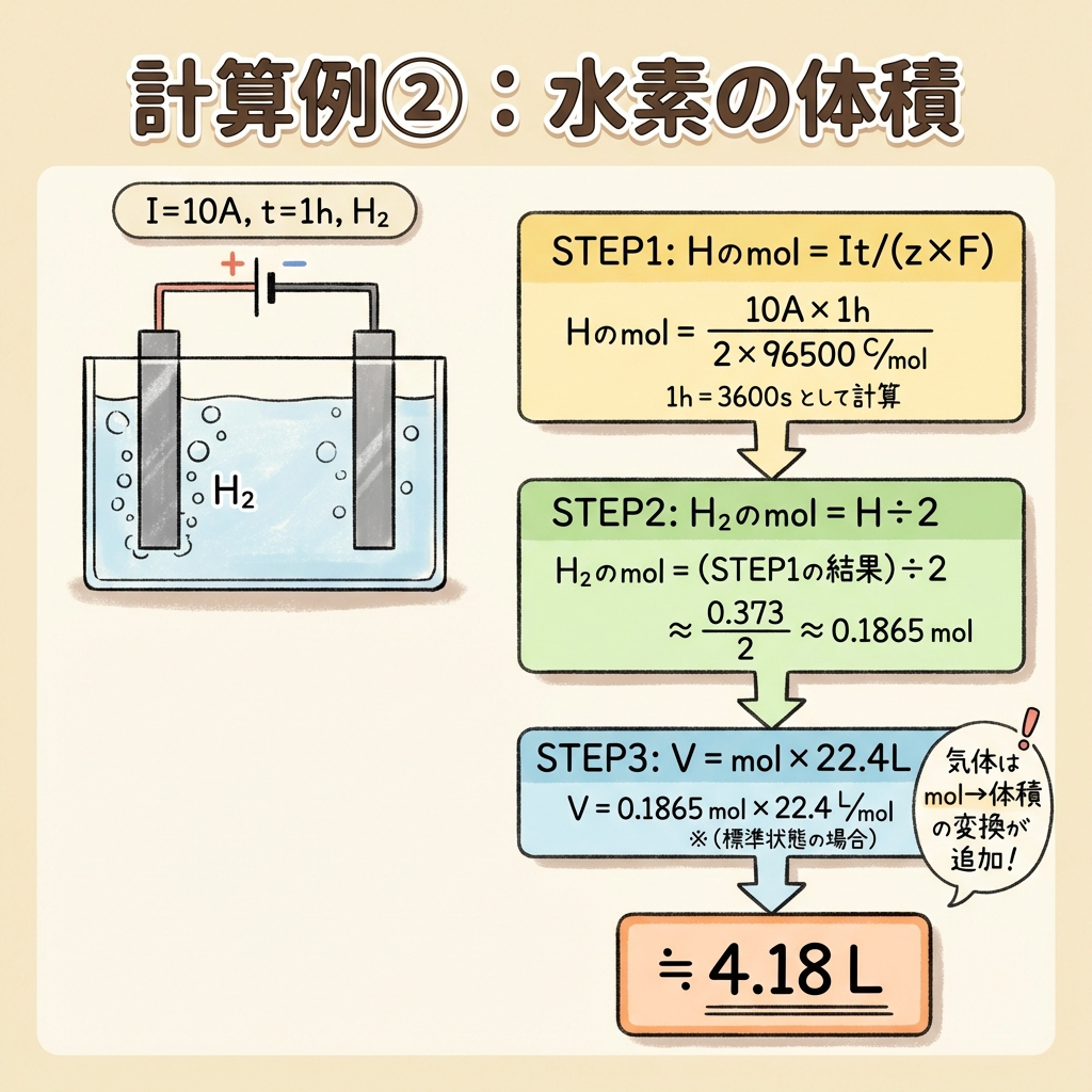 計算例②|水の電気分解で発生する水素の体積を求める