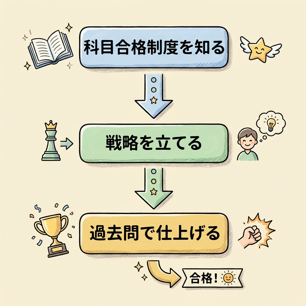 科目合格制度を活かした学習計画を。配点を意識して「捨てる勇気」を持つ。