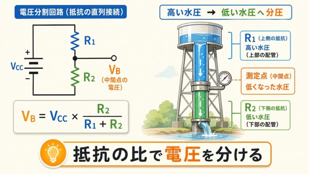 - 分圧は 「下側の抵抗 ÷ 全体」