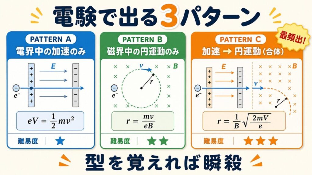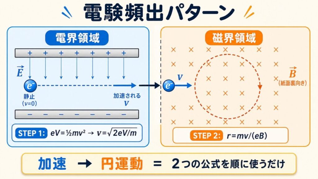 パターン3 - 加速 → 円運動の合体問題(電験頻出パターン)