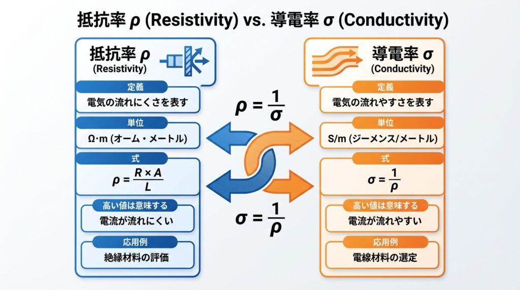 抵抗率と導電率は「逆数の関係」にあります。つまり: