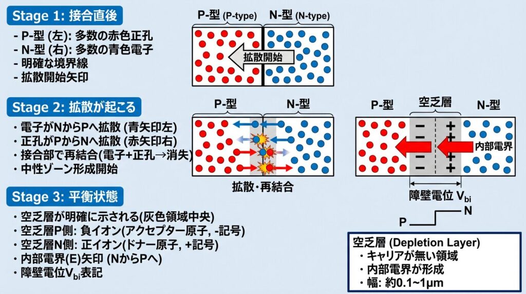 5️⃣ pn接合と空乏層の形成