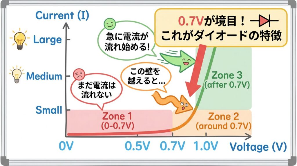 ⚡ 0.7Vの壁を越えると電流が流れ始める