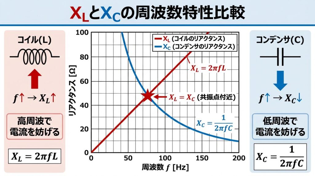 ✅ コイル(L)は「高周波が苦手」→ 高周波ほど XL が大きくなる
