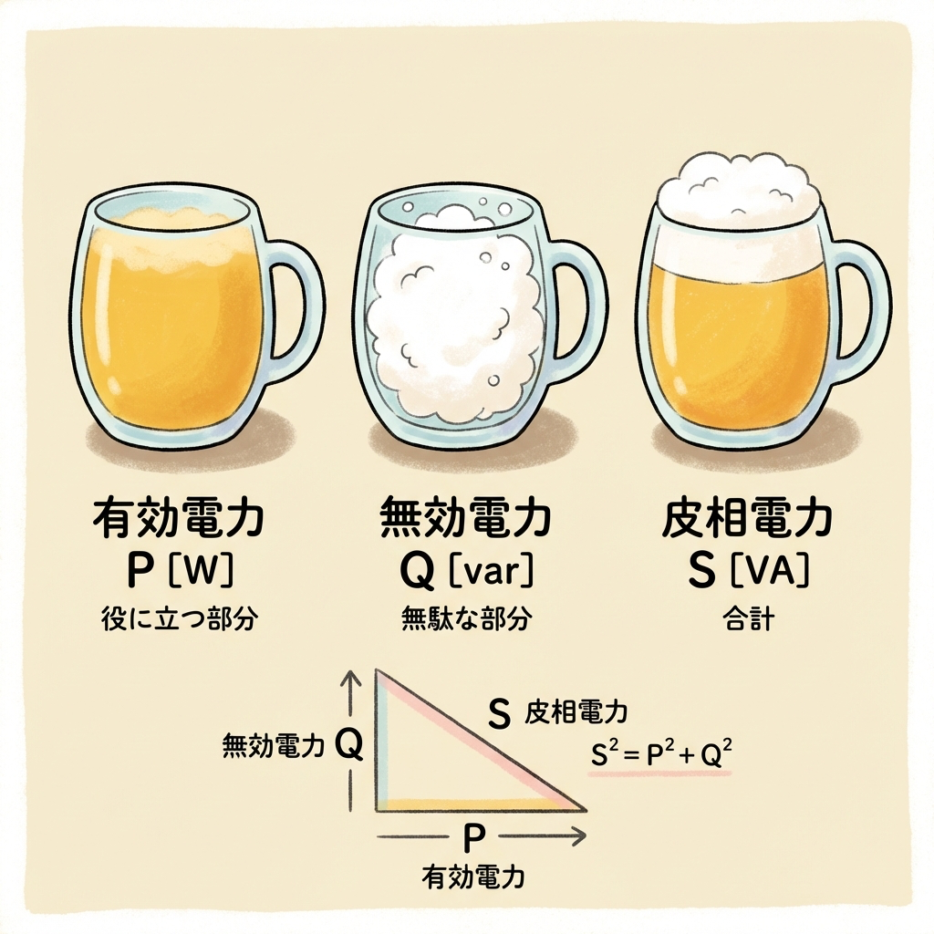 ✅ P・Q・Sの3種類の電力の違いを説明できる