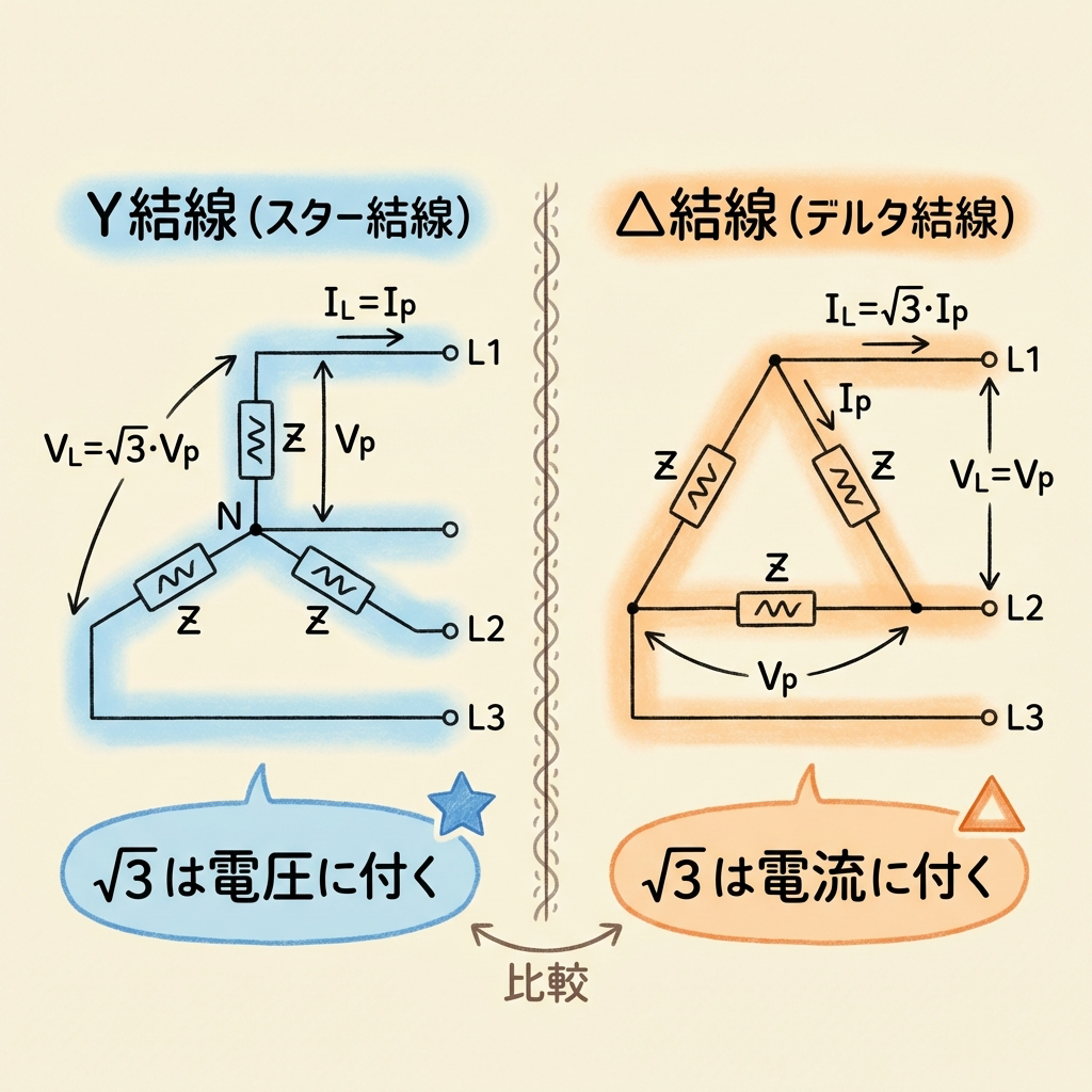 ✅ Y結線とΔ結線の特徴と√3の位置を覚えた