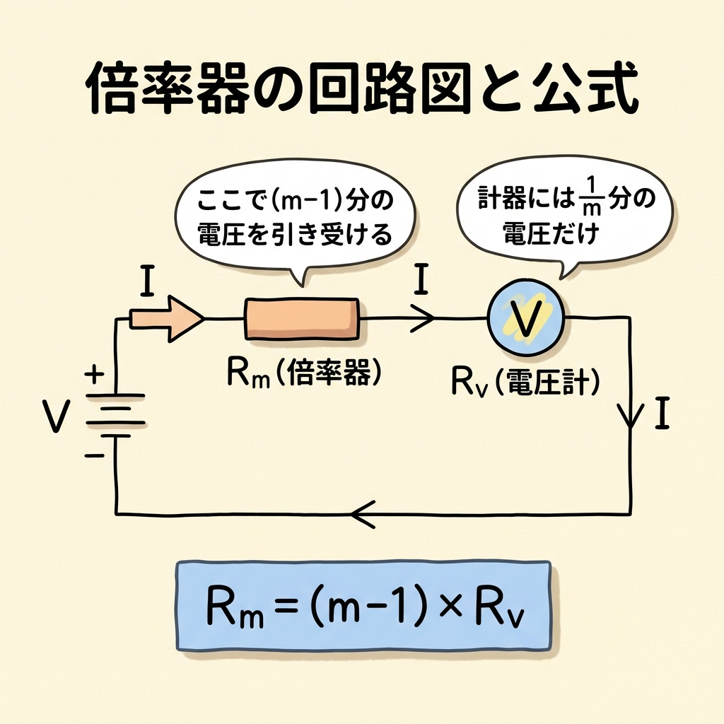 📏 倍率器の仕組みと公式|電圧計の測定範囲を広げる