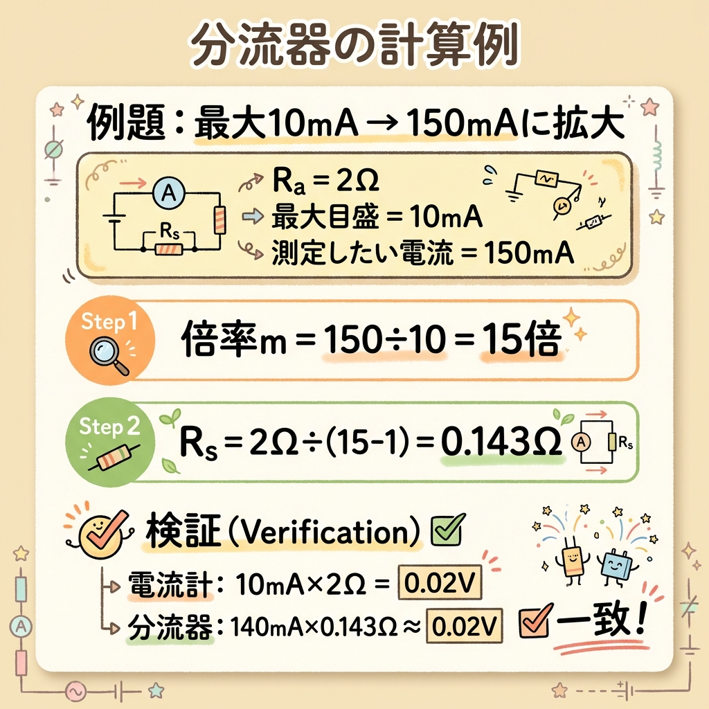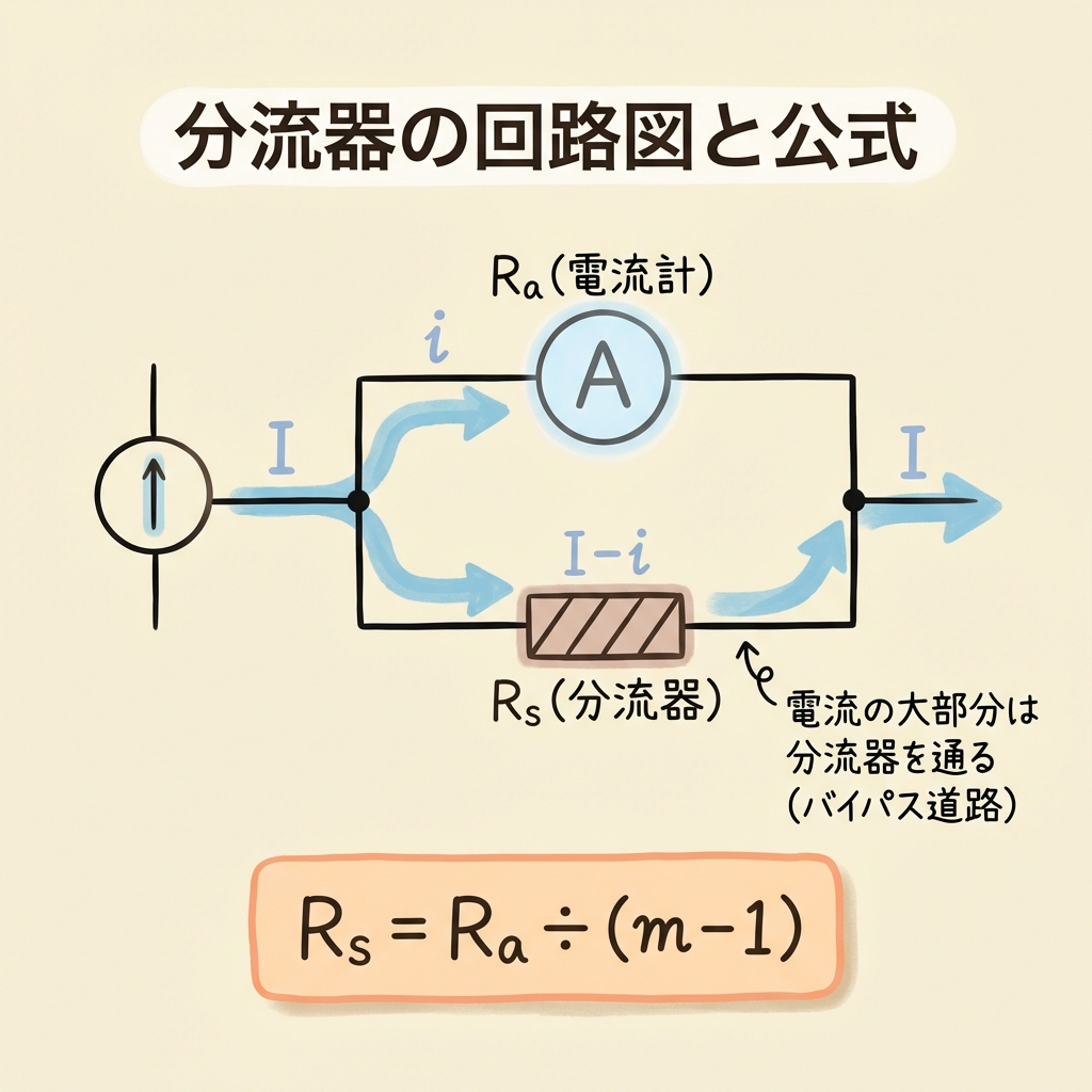 | 🔀 分流器 | 電流計に並列接続 → Rs = Ra ÷ (m−1) |