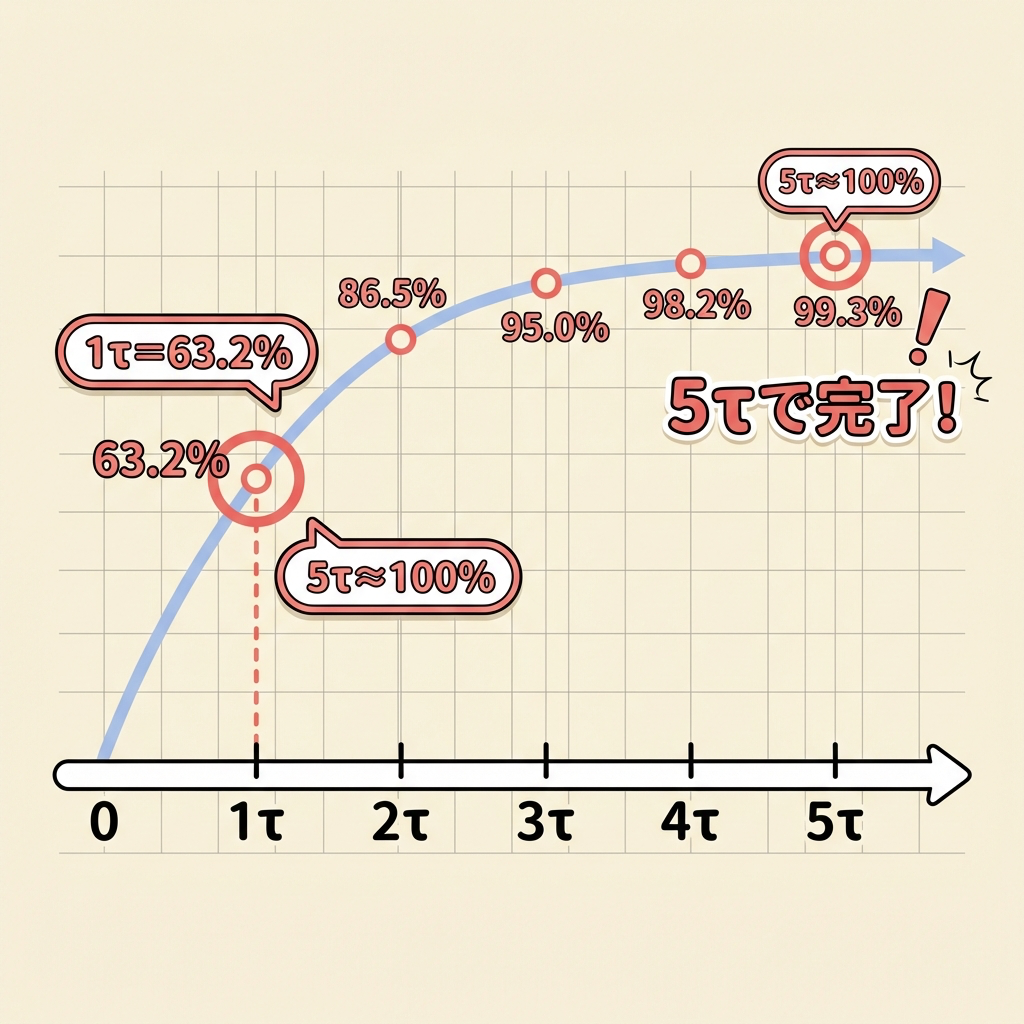 | 覚えるべき数字 | 1τ = 63.2%、2τ = 86.5%、5τ ≒ 100%(完了) |