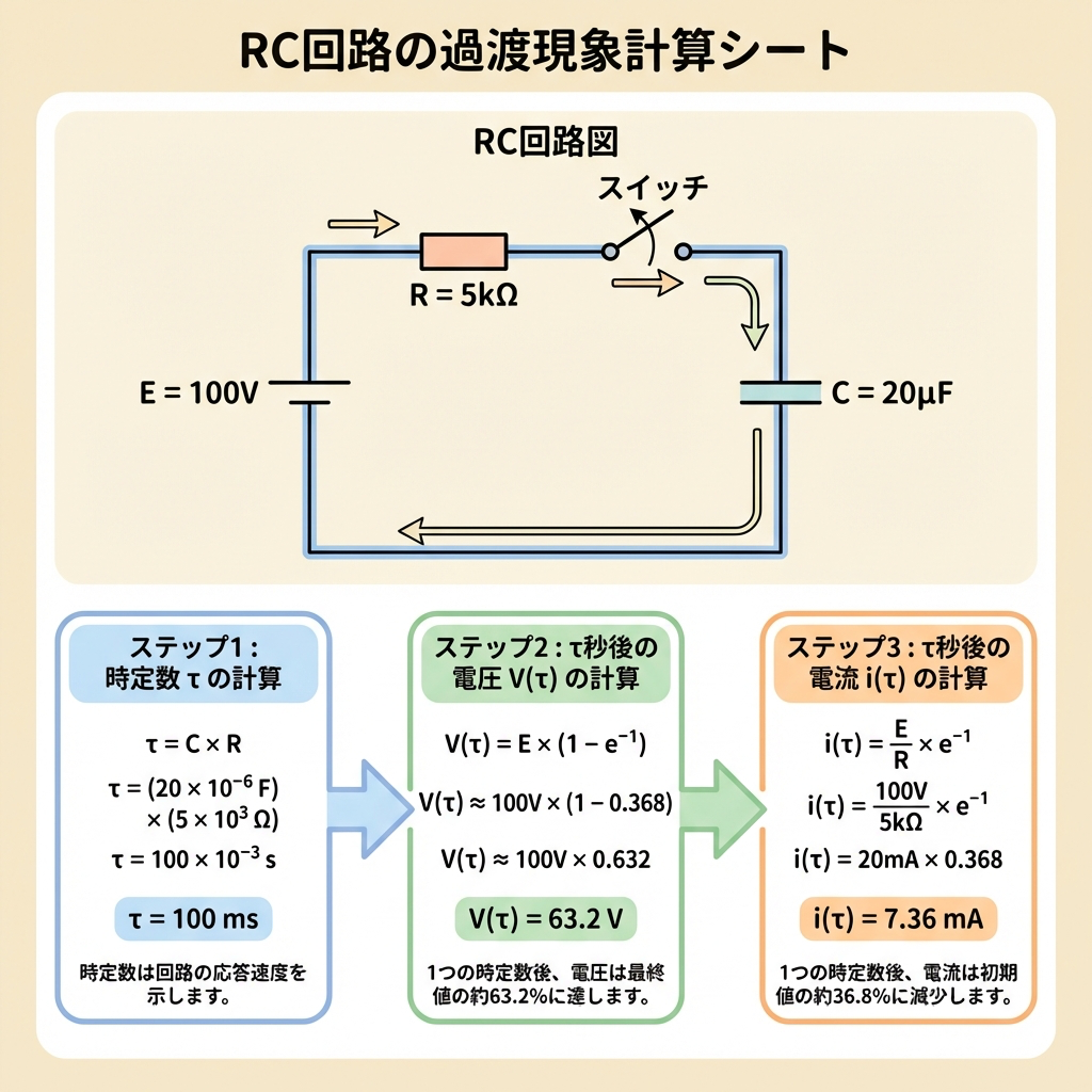 - 計算例3題── RC充電・RC放電・RL投入を実際の数値で手を動かす
