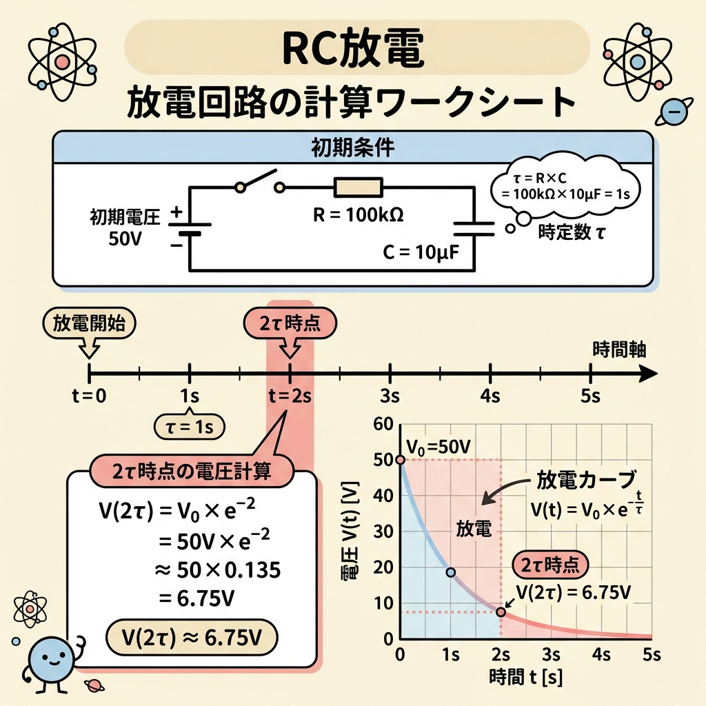 📝 例題:RC放電の2τ秒後
