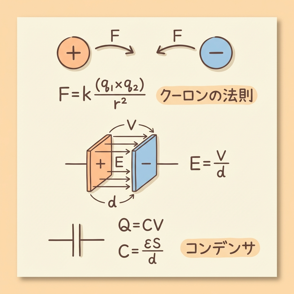 | 3 | ⚛️ 静電気 | クーロンの法則、電界、コンデンサ、静電エネルギー | ★★★★☆ | — |