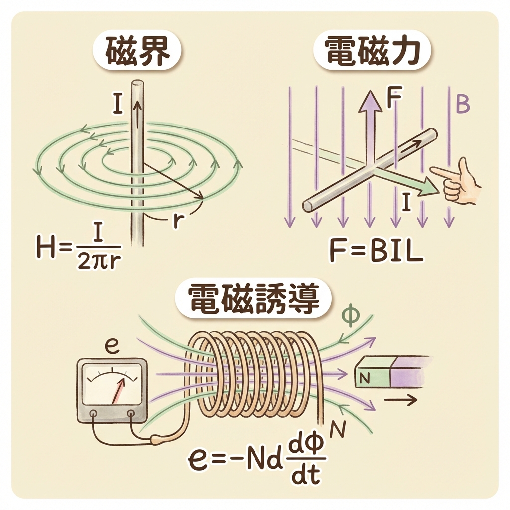 | 4 | 🧲 電磁気 | 磁界、電磁力、電磁誘導、インダクタンス | ★★★★☆ | — |