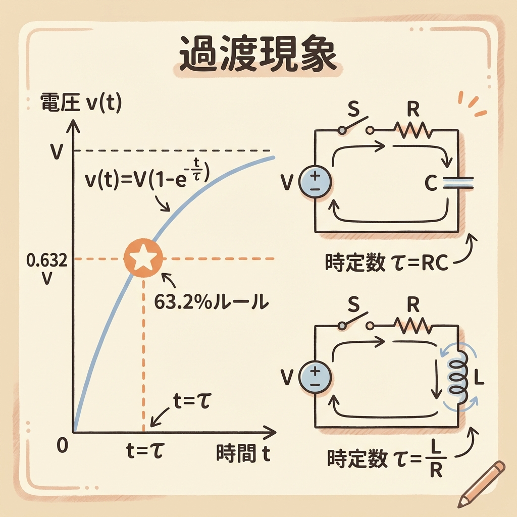 過渡現象とは?|RC・RL回路の「スイッチを入れた瞬間」を完全図解 →